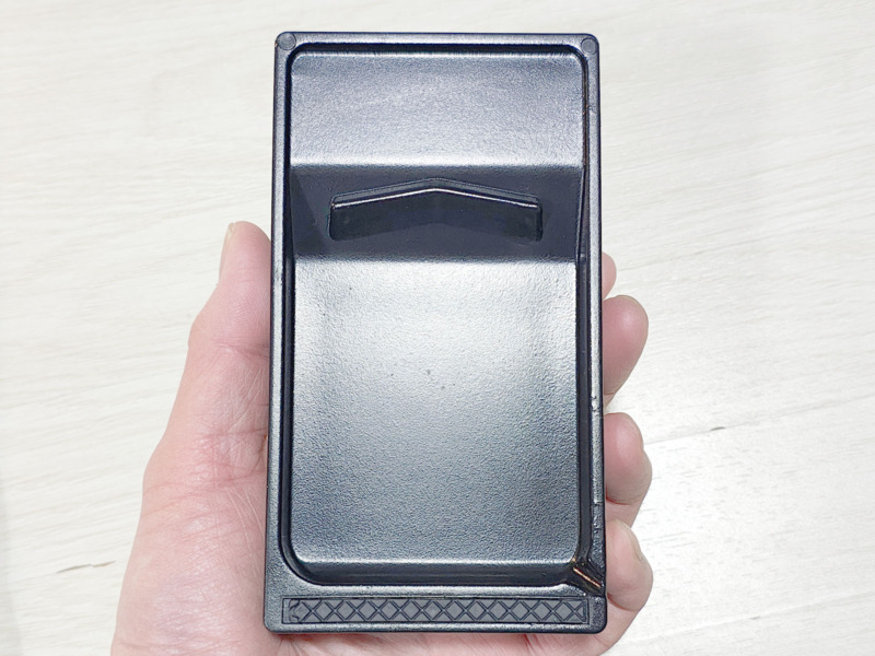 パッケージの裏面。材質はABS樹脂と記載があります(滑り止めはTPE)。